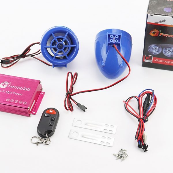 АУДИО-блок (МРЗ-USB/SD, FM-радио, пультДУ, сигнализация) + колонки 2шт (синие)