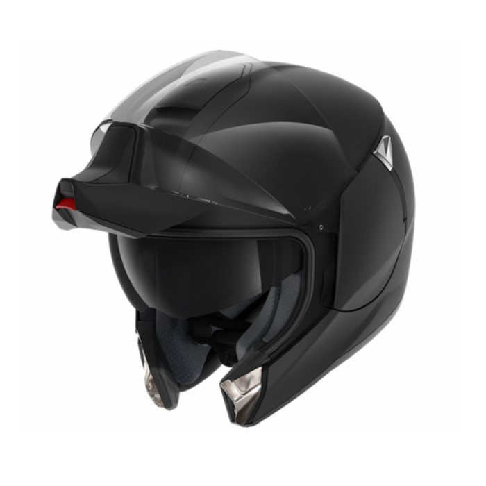 Самым большим нововведением модели Shark Evojet является визор, прикрепленный к защите подбородка, который в закрытом состоянии дает ему исключительную поверхность экрана и панорамное поле обзора. Это очень практично, его можно легко переключить одной рукой. Система блокировки подбородка осуществляется благодаря надежной системе крючков, что обеспечивает превосходный уровень защиты. Визор выполнен с защитой от царапин и запотевания, разработан в «классе 1» с переменной толщиной, чтобы устранить любые визуальные искажения независимо от угла обзора. Встроенный солнцезащитный визор регулируется с помощью эргономичного и хромированного элемента управления.Система вентиляции шлема была оптимизирована для обеспечения непрерывного потока воздуха во время использования. Защита подбородка оснащена системой вентиляции, распределяющей воздух по экрану.